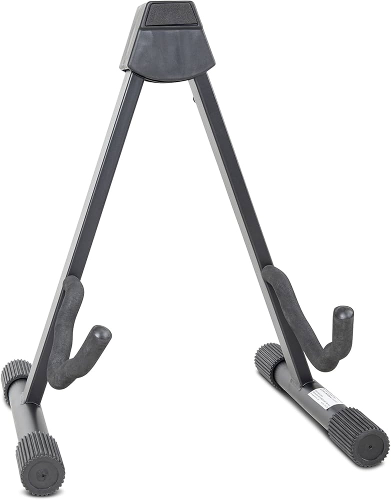Support guitare MEG robuste et stable, idéal pour maintenir votre instrument en toute sécurité. Design pliable avec protections antidérapantes pour éviter les rayures.